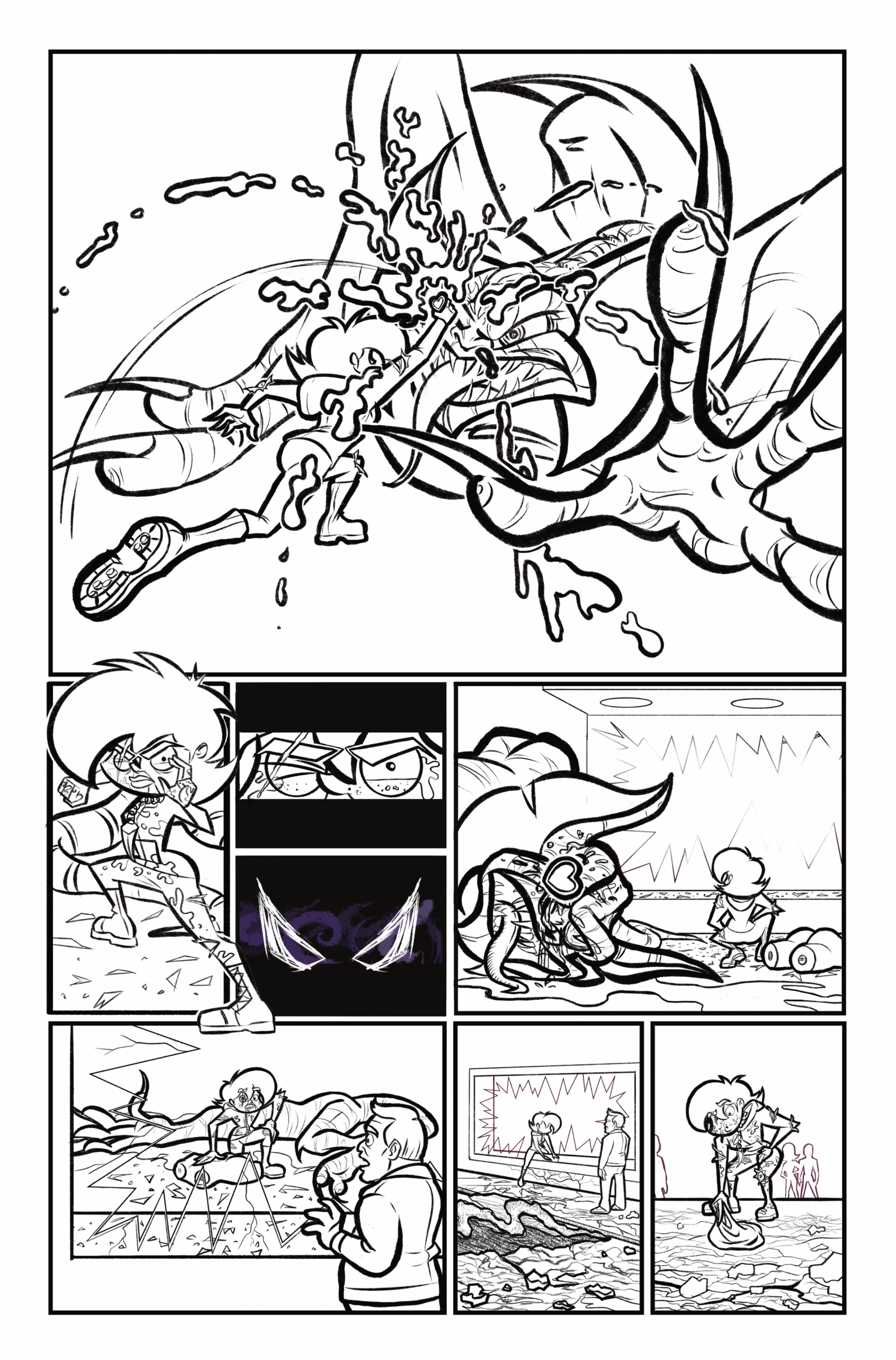 My work is governed by three priorities: structure, energy, and finish, in that order.Structure comes first because nothing survives without it. When I design characters, I start with the mannequin. If the pose can't carry motion and intent, the rest is just noise. I want poses that snap. When I make comics, I thumbnail hard and early, pushing composition and pacing until the page drags your eye exactly where it's supposed to go. When I design brands, I build systems that hold up under real use. Not ideal use. Real use. Reused, misused, resized, rushed, and still expected to work. Structure is how you make sure a strong idea doesn't fall apart the second it leaves your hands.Once that's locked, energy is what makes the work impossible to ignore. Characters should act before they explain themselves. Pages should move. Visuals should announce what they are immediately and without apology. I'm not interested in clever work that whispers and hopes you're paying attention. If something doesn't communicate decisively, I don't care how smart it is. Waffling kills momentum, and momentum is the whole point.Finish comes last, because it's something you earn. This is where craft, taste, and obsession show up. I'm constantly refining my technique, not to make things prettier, but to make them hit harder and stick longer. Finish is the difference between something that technically works and something you remember. It only matters if the bones are already doing their job.Structure to hold it. Energy to move it. Finish to make it stick.